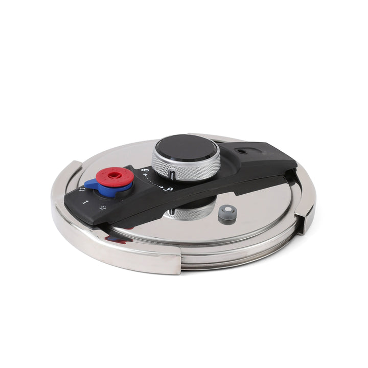 - Pressure Cooker Lid with safety lock, pressure indicator, and steam release valve