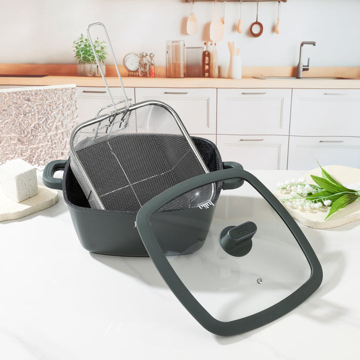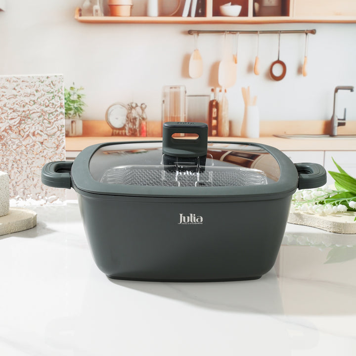 Elevate your everyday cooking with the Julia Elite Pro Square Casserole. Designed for both performance and elegance, this 28cm Square casserole features a sleek outside green color and a two-layer black marble non-stick interior that’s PTFE &...