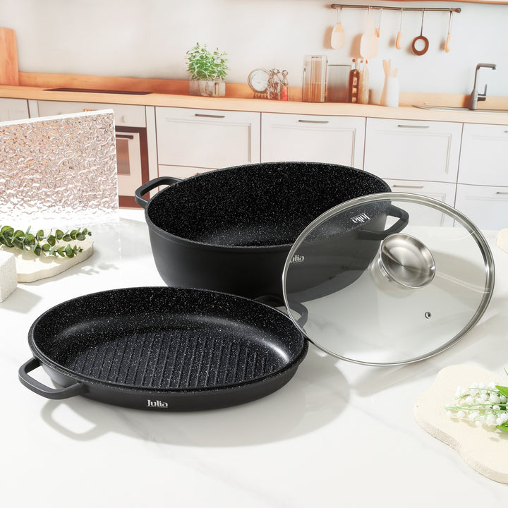 Stylish, versatile, and built to last, the Julia Elite Pro Plus Oval Roaster is a must-have addition to any modern kitchen or cookware collection.